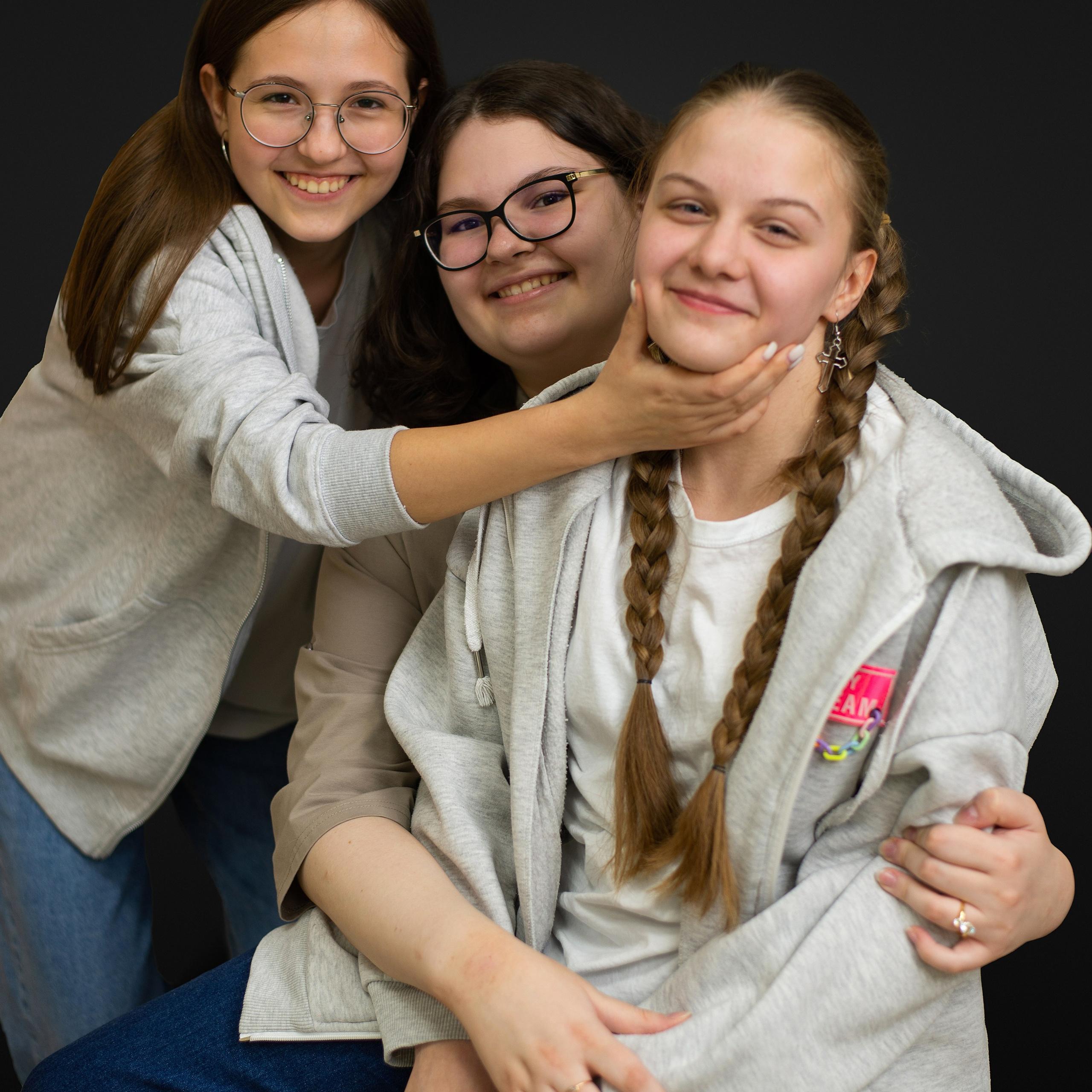 Вторую фотосессию с друзьями, наградами, одеждой или атрибутами, которые отразят личность выпускающегося школьника — также можно выбрать в студии.
